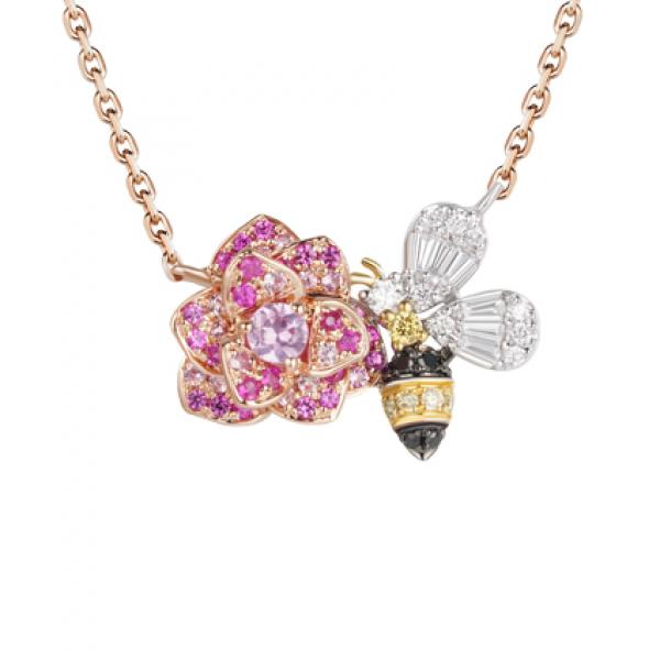 The SPRING MIRACLE�?BEE series features diligent and tiny bees as its theme. It is crafted using 18K white and yellow gold, along with natural diamonds, yellow diamonds, and black diamonds, to depict the life moments of bees, such as resting, flying