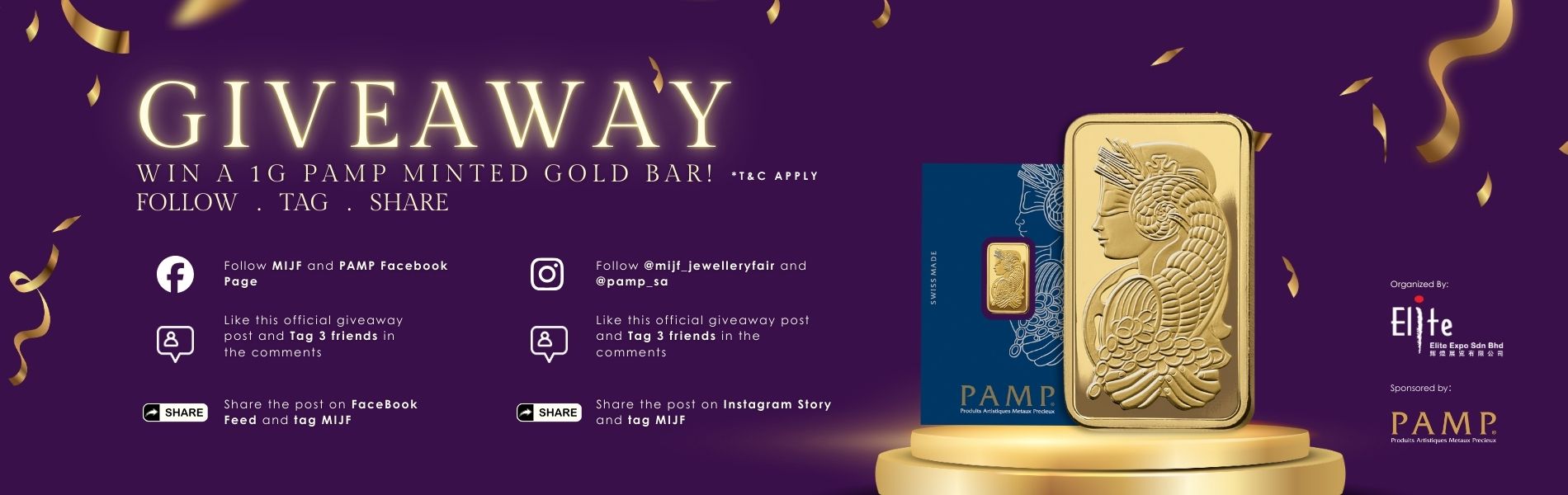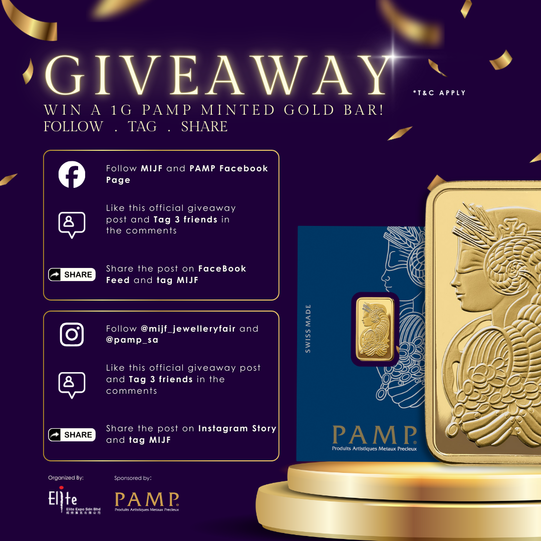 Follow MIJF Instagram page (@mijf_jewelleryfair) or MIJF Facebook page (https://www.facebook.com/MalaysiaInternationalJewelleryFair) and PAMP Instagram page (@pamp_sa) or PAMP Facebook page (https://www.facebook.com/PAMPSuisse/).